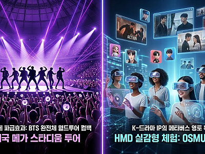 글로벌 대중문화 산업의 지형을 뒤흔들 거대한 메가 트렌드가 도래했다. 오프라인 무대를 장악한 방탄소년단(BTS)의 완전체 귀환과, 최첨단 실감형 기술(XR)을 입고 가상 세계로 영토를 넓히는 K-콘텐츠 IP의 융합 현상이다.최근 미국 빌보드(Billboard)는 BTS의 2026년 완전체 컴백과 월드 투어 계획을 대서특필하며 "팝 역사상 가장 거대한 규모의…